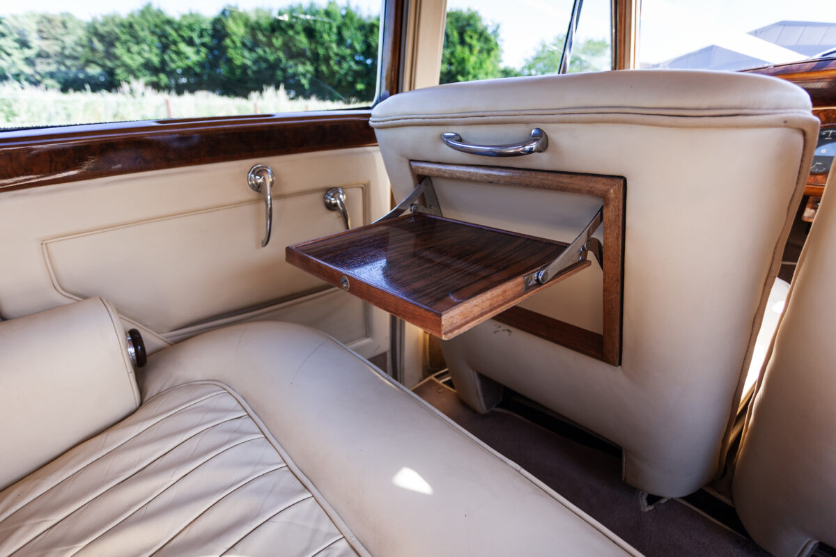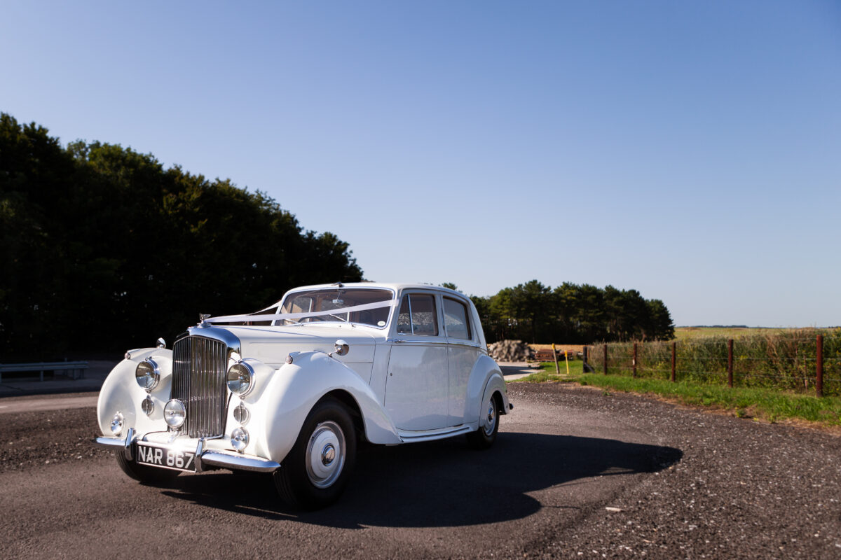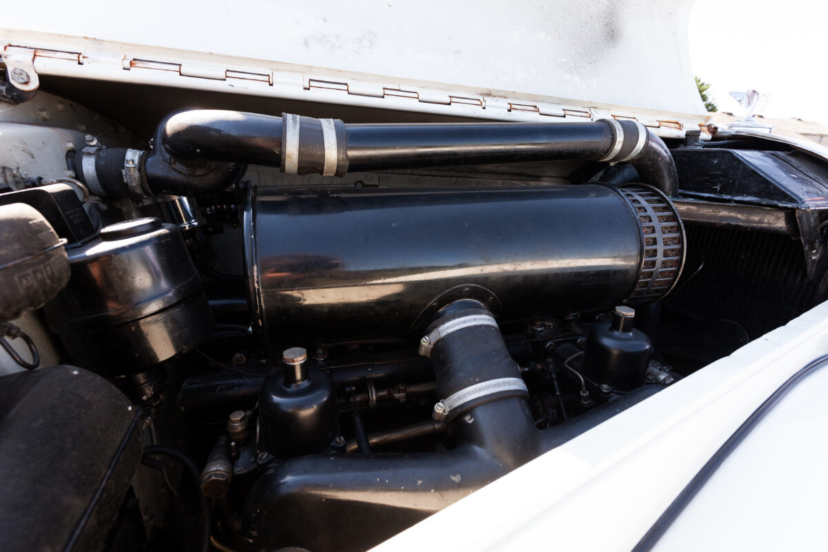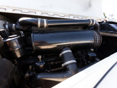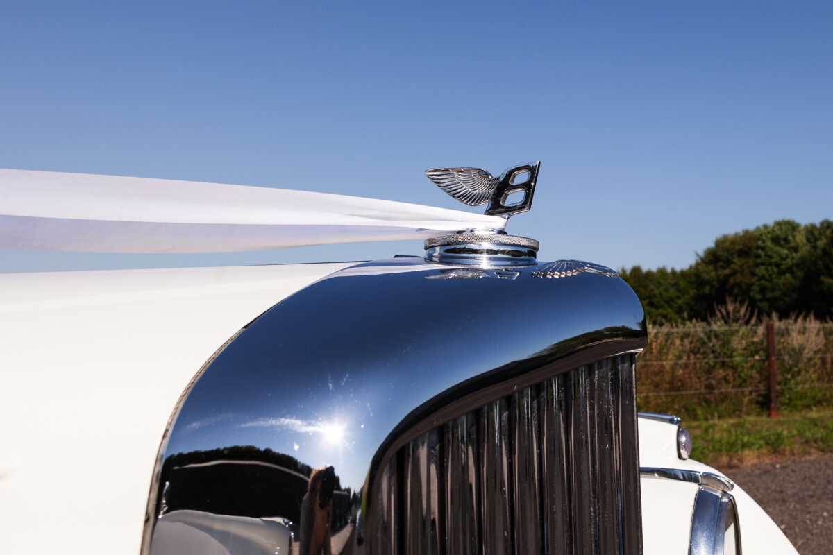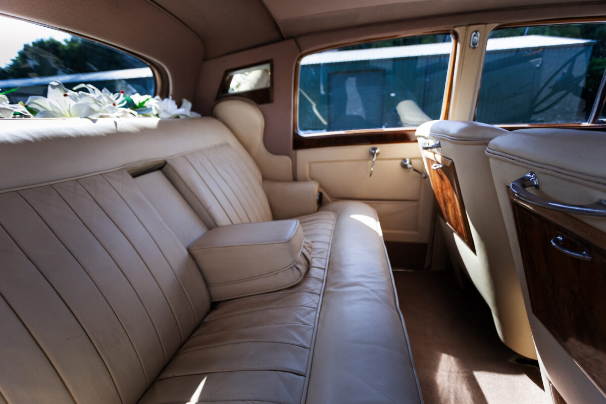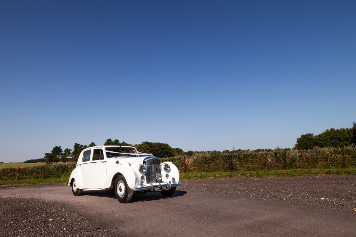 She was originally purchased in 1951 as a ‘big bore-small boot’ Sports Saloon in Black with Tan leather. She had a major refurbishment in 1991 and the colour was changed to white with matching leather. She went to Poland in 2009 and was used as a wedding car which has been her career ever since. On return to the UK she got back her original number plate. She has had bits of rust and paintwork refurbished and looks stunning. Underneath the bonnet there was a full engine rebuild two years ago (new crank, ends, rods, pistons etc). and she runs beautifully. The wood veneer has suffered a bit of damp ingress from the windscreen. Leather is excellent. She has her original logbook and bits of historical paperwork.