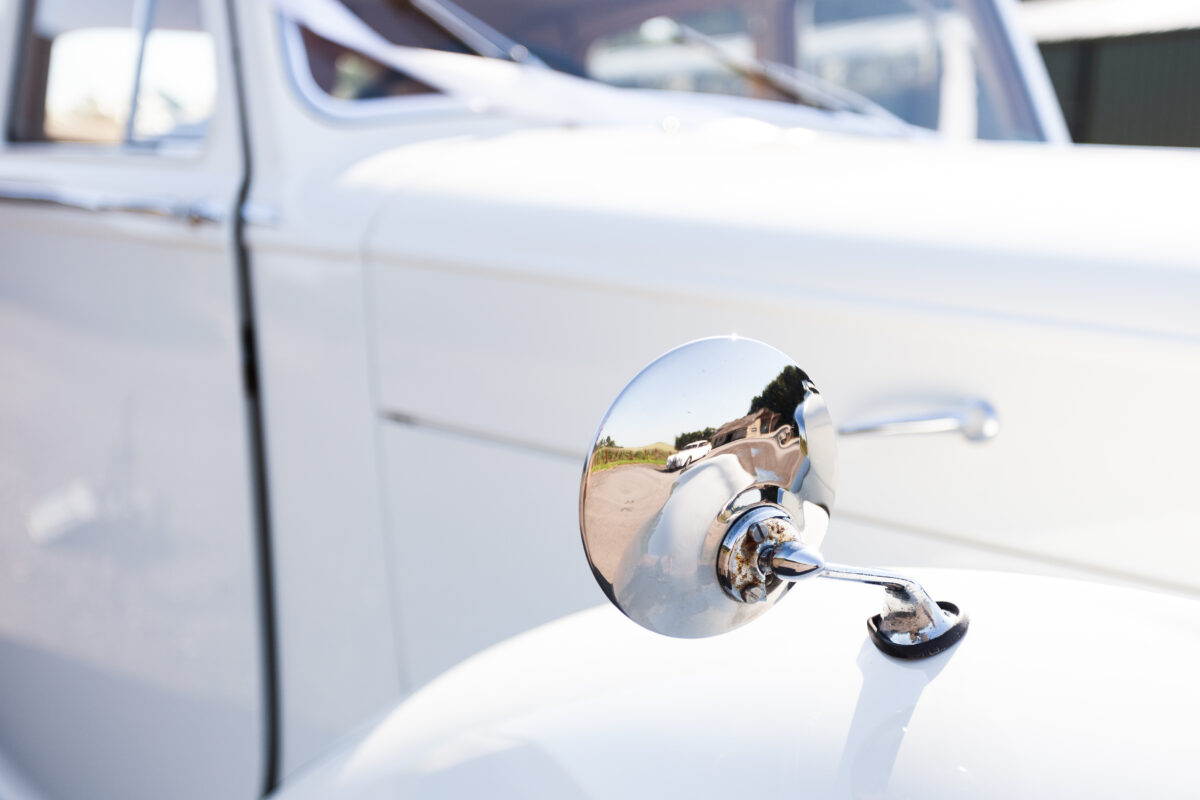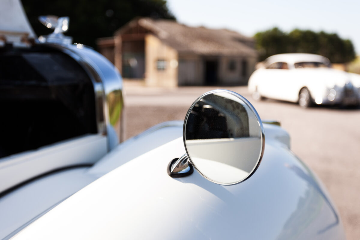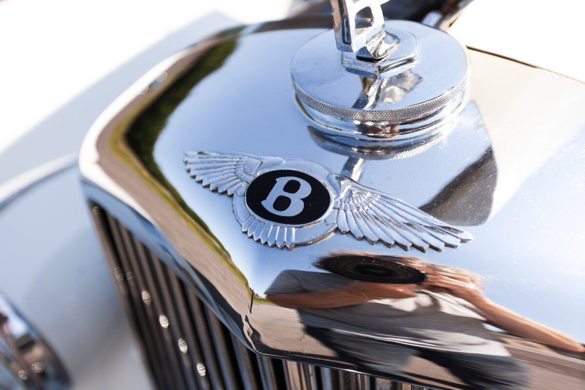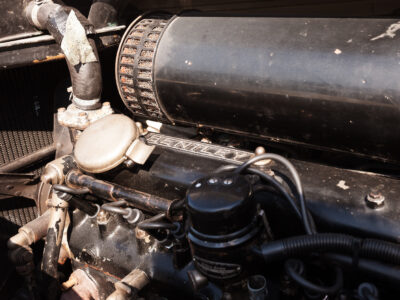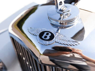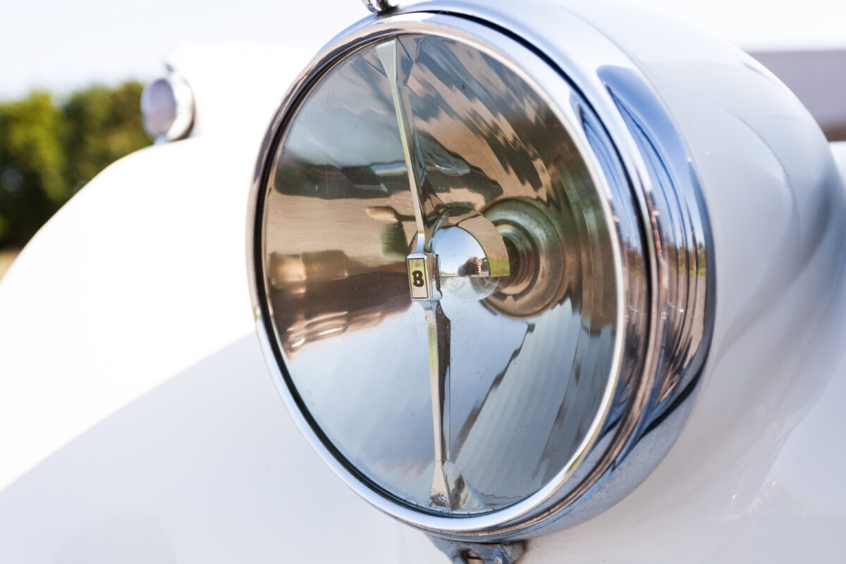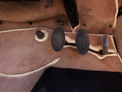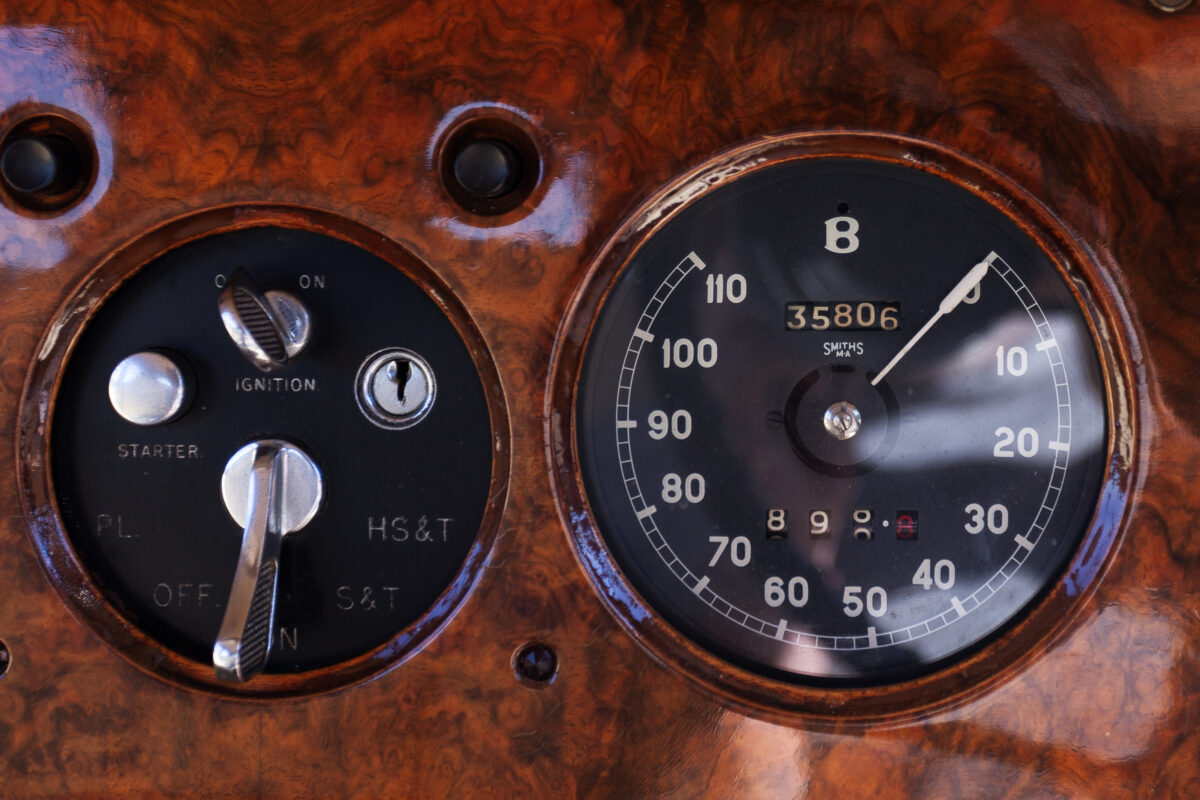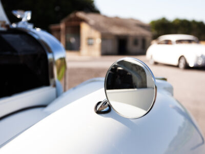 She was originally purchased in 1951 as a ‘big bore-small boot’ Sports Saloon in Black with Tan leather. She had a major refurbishment in 1991 and the colour was changed to white with matching leather. She went to Poland in 2009 and was used as a wedding car which has been her career ever since. On return to the UK she got back her original number plate. She has had bits of rust and paintwork refurbished and looks stunning. Underneath the bonnet there was a full engine rebuild two years ago (new crank, ends, rods, pistons etc). and she runs beautifully. The wood veneer has suffered a bit of damp ingress from the windscreen. Leather is excellent. She has her original logbook and bits of historical paperwork.