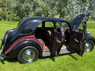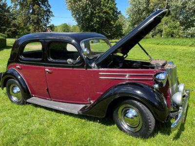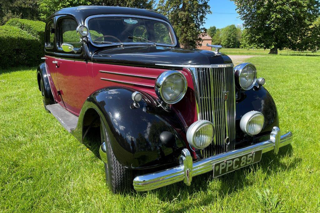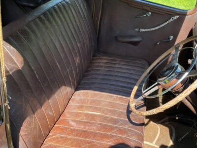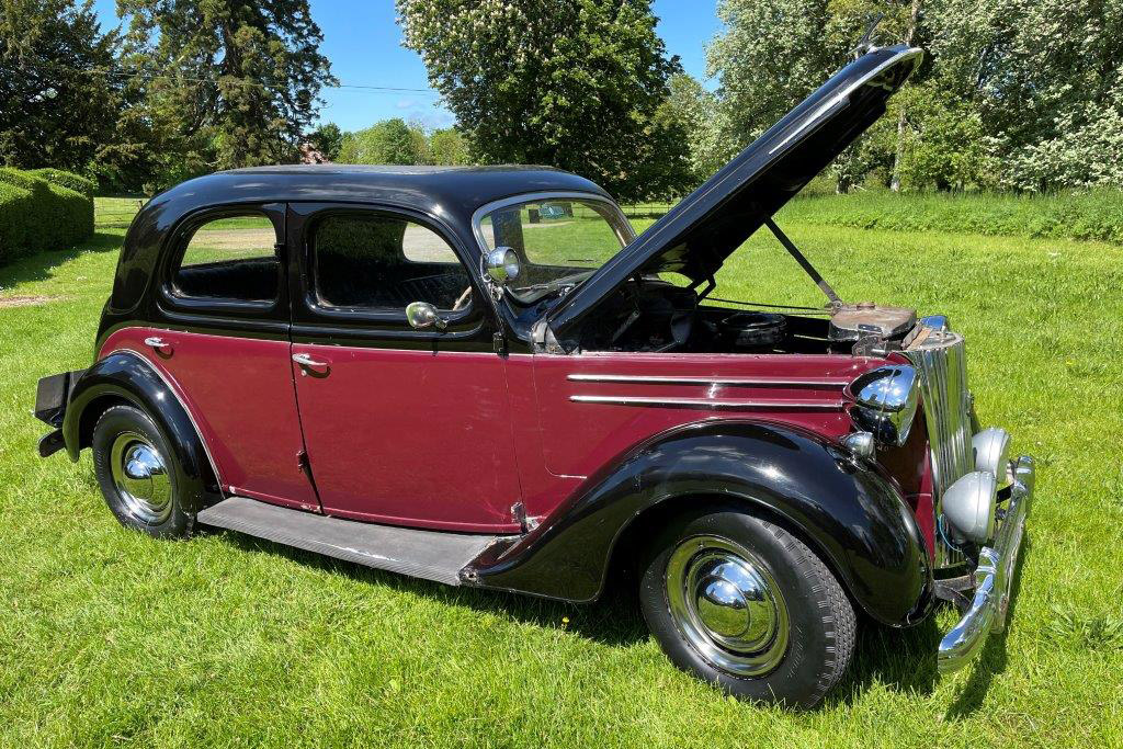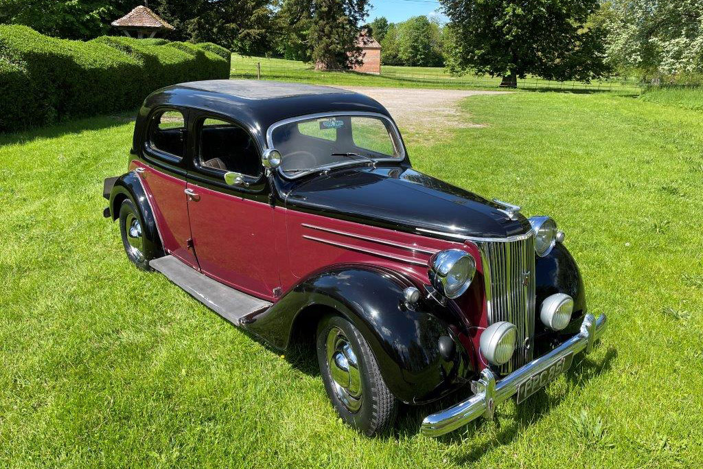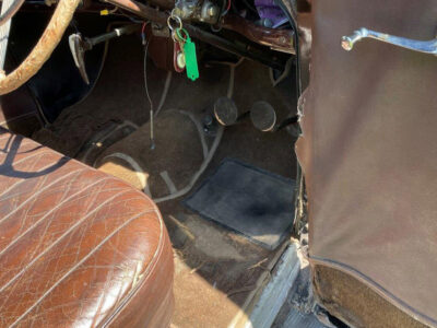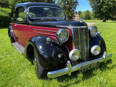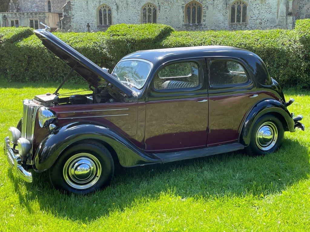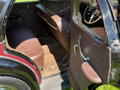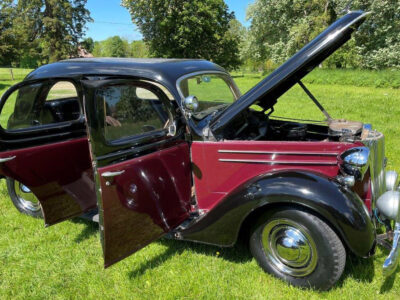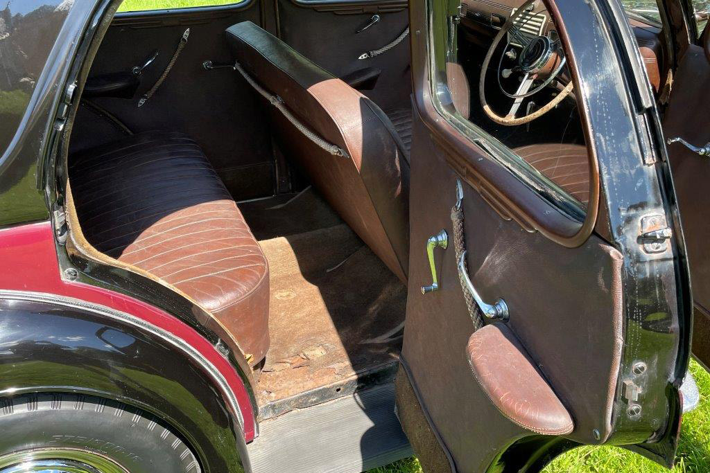 Exterior is Black and Maroon with brown leather seats and brown interior, the paintwork is in good condition with some patches of rust on the wings and running boards, interior carpet could do with replacing and possibly the headlining.